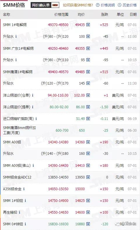 俊霖合金解讀:7月1日有色金屬行情