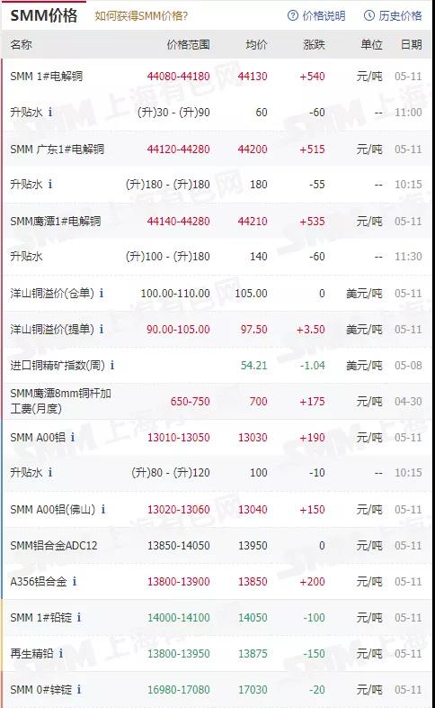 您現(xiàn)在所在位置:首頁?新聞資訊?行業(yè)新聞-俊霖合金解讀:5月11日有色金屬行情行業(yè)新聞