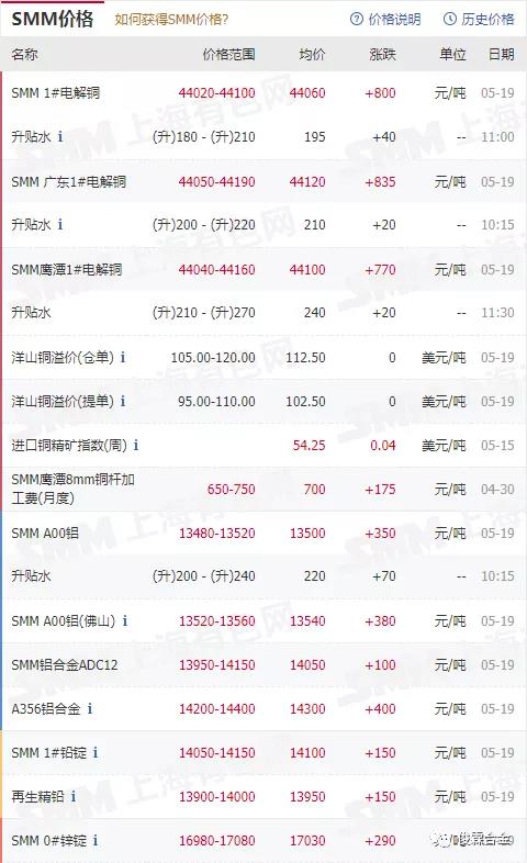 俊霖合金解讀:5月19日有色金屬行情